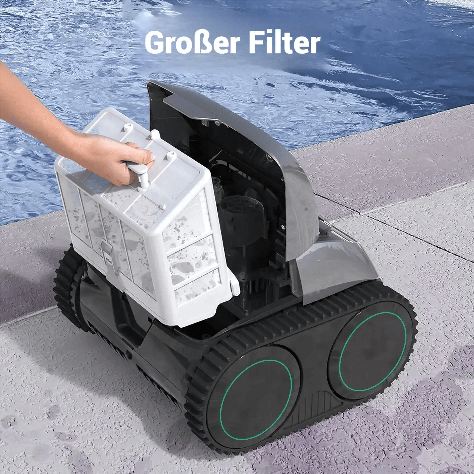 - Effiziente Reinigung- Mit dreifacher Motorleistung und zusätzlichen Schwimmteilen